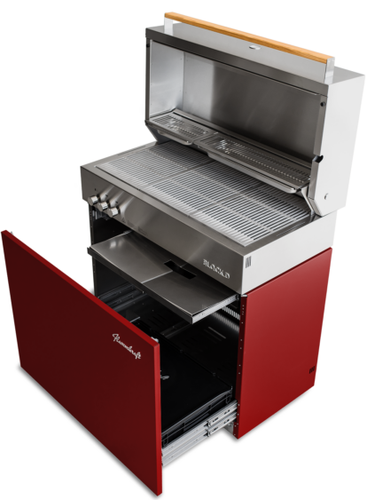 Unterbau und Grill mit mattschwarzer Beschichtung